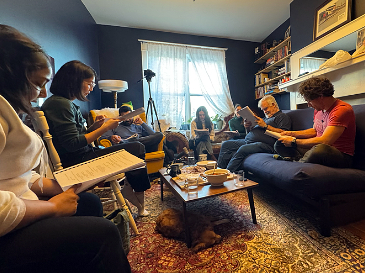 The Friendly Town castmembers participate in a script reading of Brennan Martin's movie. Courtesy Brennan Martin