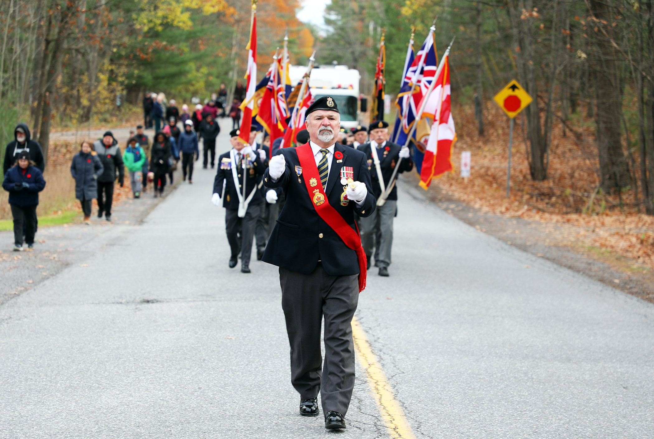 Branch 616 Sergeant-at-Arms Rob Gallant leads the Colour Guard to the Branch 616 cenotaph during the Saturday, Nov. 8 West Carleton Royal Canadian Legion Remembrance Day service. Photo by Jake Davies