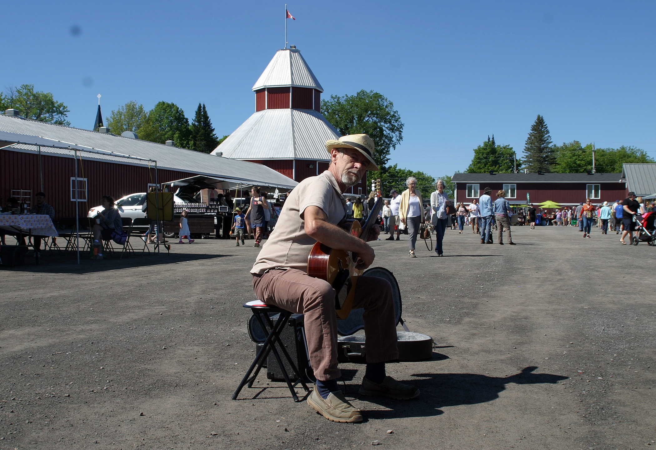 A man plays music at the Carp Farmers' Market.