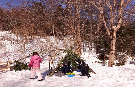 Make snow angels, participate in snowman races, go on a wild scavenger hunt, gather natural materials for crafting and participate in other games “as we make them up.”