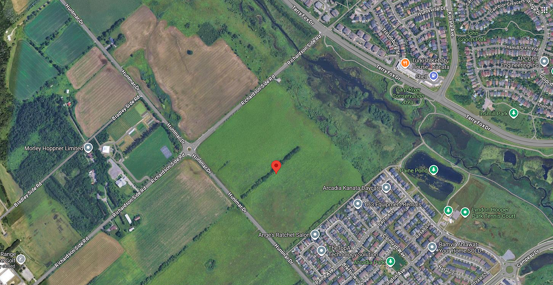 Minto Communities is looking to rezone 1700 Richardson Side Road, located by the orange dot, to Rural Countryside. Courtesy Google Maps
