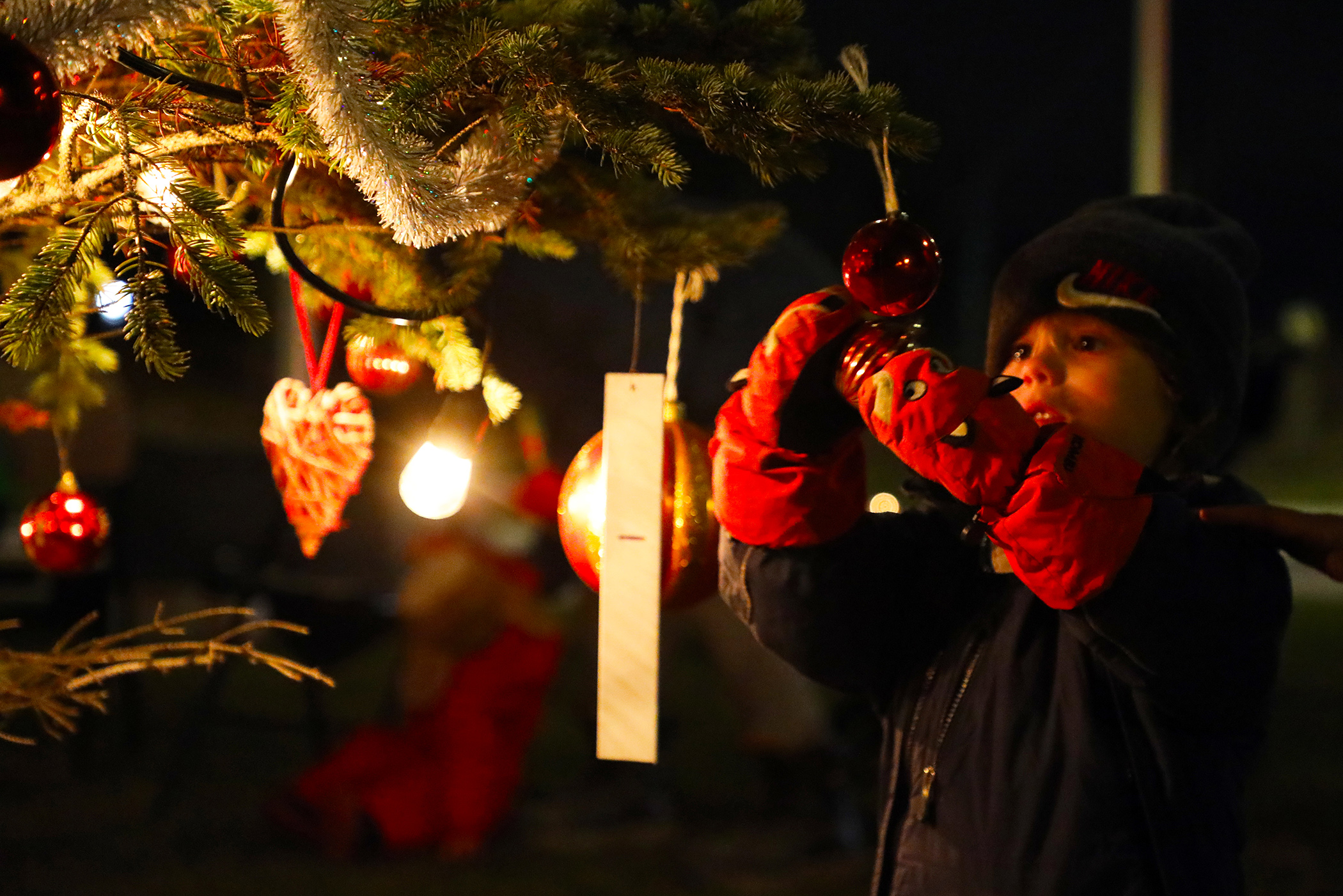 Kinburn's Roy Gelok, 3, gives one of the ornaments a hands-on inspection during the Women's Institute's tree-lighting in 2021. This year marks the 10th anniversary of the Dunrobin WI's Christmas Tree Lighting. Photo by Jake Davies